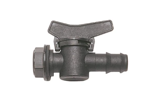 Absperrhahn mit Kontermutter und Dichtung. Trinkwasserecht. 2 bar max. Anschlüsse 3/4”A-Gewinde x 18-20 mm.