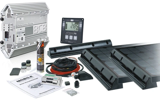 Mehr Power im Reisemobil. Die optimale Ergänzung oder alleinige Bordstromversorgung für Reisemobile. Die leistungsstärkeren PowerPack CLASSIC POWER PLUS I und PowerPack CLASSIC POWER PLUS II Sets sind mit einem BCB mit Ausgangsleistungen von 40 A bzw. 30 A ausgestattet. Sie eignen sich für Reisefahrzeuge zur schnelleren Aufladung oder wenn etwas mehr Batteriekapazität vorgesehen bzw. beabsichtigt ist. Die Ladeleistung kann am Gerät gedrosselt werden. Außer den bereits erwähnten Vorteilen aller BCB-Systeme empfehlen sich diese Geräte nicht nur zur Erweiterung eines bestehenden Ladesystems sondern auch als alleinige zentrale Ladestation für den Selbstausbau oder Kastenwagenausbau. Optimale IUoU-Ladung an 230V und auch während der Fahrt. Parallel in das vorhandene Bordnetz einspeisen oder als alleinige Basis mit direkter Verbindung zur Startbatterie. Es können alle Batterietypen (Nass, Gel, AGM, LiFePO4) geladen werden und zusätzlich auch umschaltbar gängige LiFePO4-Batterien. Durchgehende Ladung bei „Euro 5“ und „Euro 6“ ist garantiert. PowerPack CLASSIC POWER PLUS I und PowerPack CLASSIC POWER PLUS II sind mit einem Batterie Computer MT 5000iQ ausgestattet und zusätzlich mit einem (CLASSIC POWER PLUS I) oder zwei Solarmodulen (CLASSIC POWER PLUS I) MT-Black-Line mit jeweils 160Wp.