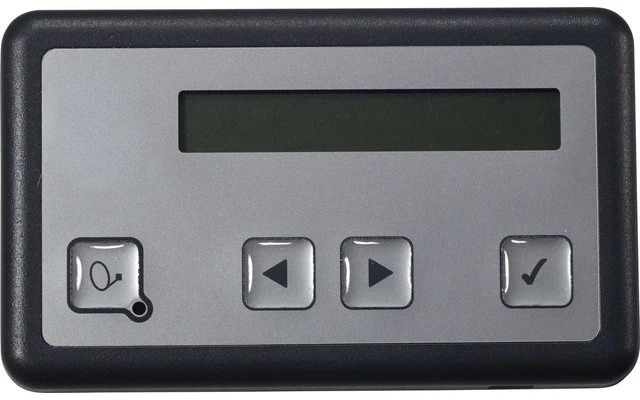Das Steuergerät (Maße: BxHxT = 20 x 3 x 11,2 cm), vollautomatische Zentrale im Inneren des Fahrzeugs, beinhaltet die gesamte Elektronik der Sat-Anlage und kann durch seine flache Bauweise unsichtbar im Schrank untergebracht werden. Zusätzlich angebracht wird nur das handliche Bedienteil, das über wenige, anwenderfreundliche Tasten verfügt (siehe Bild – Maße: BxHxT = 14 x 7,1 x 3,5 cm). Auf Knopfdruck fährt die Antenne in die letzte Empfangsposition (LEM). Wird dort kein Bild empfangen, startet sofort die vollautomatische Suche. Das hintergrundbeleuchtete Display informiert Sie dabei über alle Funktionen.