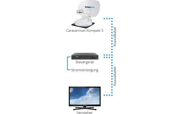 Der Caravanman Kompakt 3 ist die ideale Lösung um platzsparend Satellitenfernsehen auf Ihrem Caravan oder Reisemobil zu empfangen. Auf Knopfdruck findet die Antenne in kürzester Zeit den gewählten Satelliten. Die flache Aufbauhöhe von nur 17 cm beeinträchtigt die Gesamthöhe Ihres Fahrzeuges kaum und der kleine Schwenkbereich von nur 77 cm findet auf jedem Fahrzeug seinen Platz.
